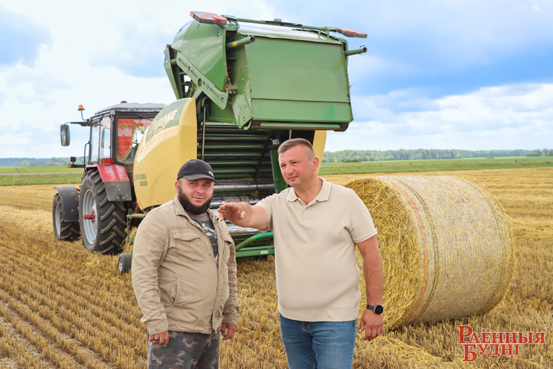 Адразу за камбайнамі ідзе прасаванне саломы ў рулоны з наступнай вывазкай і складзіраваннем у сцірты. Такая вось зладжаная работа. Што можаш выканаць сёння, то не адкладвай на заўтра, бо можа і пагода сапсавацца, і згубіш проста час, які павінен быць заўсёды на тваім баку, асабліва падчас жніва. Зноў жа да кемлівасці работнікаў ААТ «Велікасельскае Агра». Што рабіць, калі валок саломы вельмі высокі і чапляе за агрэгаты трактара? Адказ просты: патрэбна спераду тэхнікі змайстраваць гідраўлічны каток, які і будзе яго прыціскаць да зямлі. Сказана — зроблена.