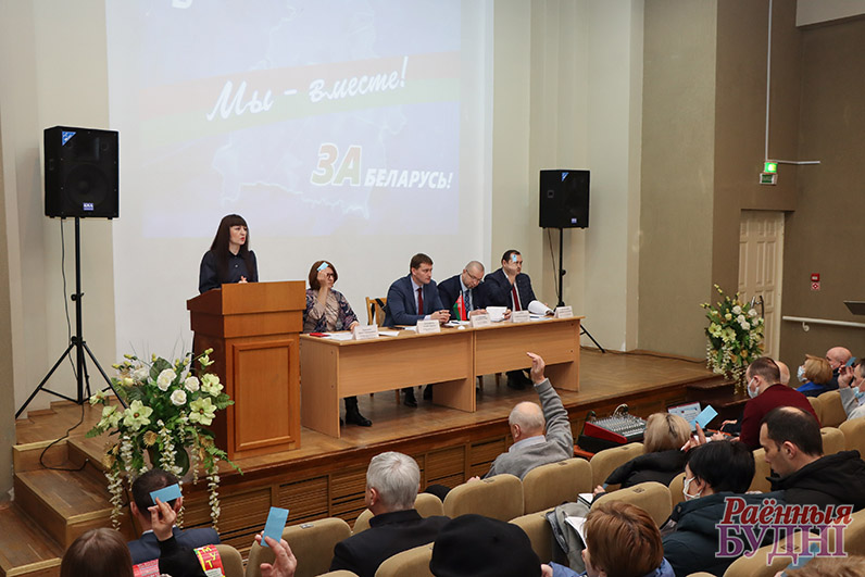 З дакладам, які тычыўся дзейнасці раённага аб’яднання ў 2021-м і задачах на новы год, выступіла сама Таццяна Юр’еўна. Яна адзначыла, што на пачатак года ў раёне налічваецца 147 пярвічных прафсаюзных арганізацый і 13 галіновых прафсаюзаў. На заводзе радыёдэталей, у раённым вузле паштовай сувязі, «Камунальніку» і многіх іншых дзяржарганізацыях усе супрацоўнікі з’яўляюцца членамі прафсаюза. Ідзе работа па актывізацыі стварэння пярвічак і ў прыватным сектары. Летась яны з’явіліся ў пяці такіх арганізацыях.