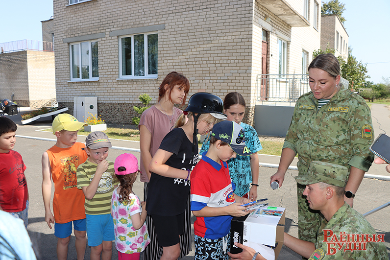 У рамках рэспубліканскай акцыі «Збяром дзяцей у школу» пагранічнікі зрабілі падзею асабліва ўрачыстай, эфектна прыбыўшы на месца на магутных матацыклах, бліскучых хромам і лакам. Дзеці з захопленымі вачыма разглядалі тэхніку, а затым выстраіліся ў чаргу, каб сфатаграфавацца за рулём. Пагранічнікі прывезлі з сабой не толькі выдатны настрой, але і шчодрыя падарункі: зручны камплект садовай мэблі, каб атрымліваць асалоду ад адпачынку на свежым паветры, вялізны набор яркіх канцылярскіх прылад, якія дапамогуць у вучобе, мячы для вясёлых і актыўных гульняў, а таксама салодкія пачастункі, каб парадаваць юных выхаванцаў.