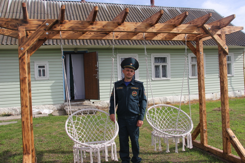 — Першым сабраў вось гэты драўляны гамак,— расказвае творца.— Малюнак убачыў у інтэрнэце, але вырашыў зрабіць інакш, як выглядае ў маёй фантазіі. Потым змайстраваў гэтую лаўку, ужо без усялякіх падказак, па ўласнай інтуіцыі.