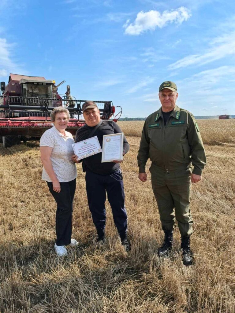 Акрамя Данііла Севасцьянчыка, у жніве–2025 удзельнічаюць і яшчэ два работнікі лясгаса: вальшчык лесу Міхаіл Гайдук і інжынер па ахове лесу Іван Носель. Падзякаваць ім за гэты важны ўклад у харчовую бяспеку краіны прыехалі старшыня Брэсцкага абласнога прафсаюза работнікаў лесу і прыродакарыстання Аксана Шамякова, галоўны ляснічы Дзмітрый Козел і старшыня прафсаюзнай арганізацыі лясгаса Наталля Кульба.