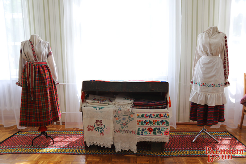 Акрамя інтэр’ернага тэкстылю прадстаўлены і традыцыйны народны касцюм з даматканага палатна.