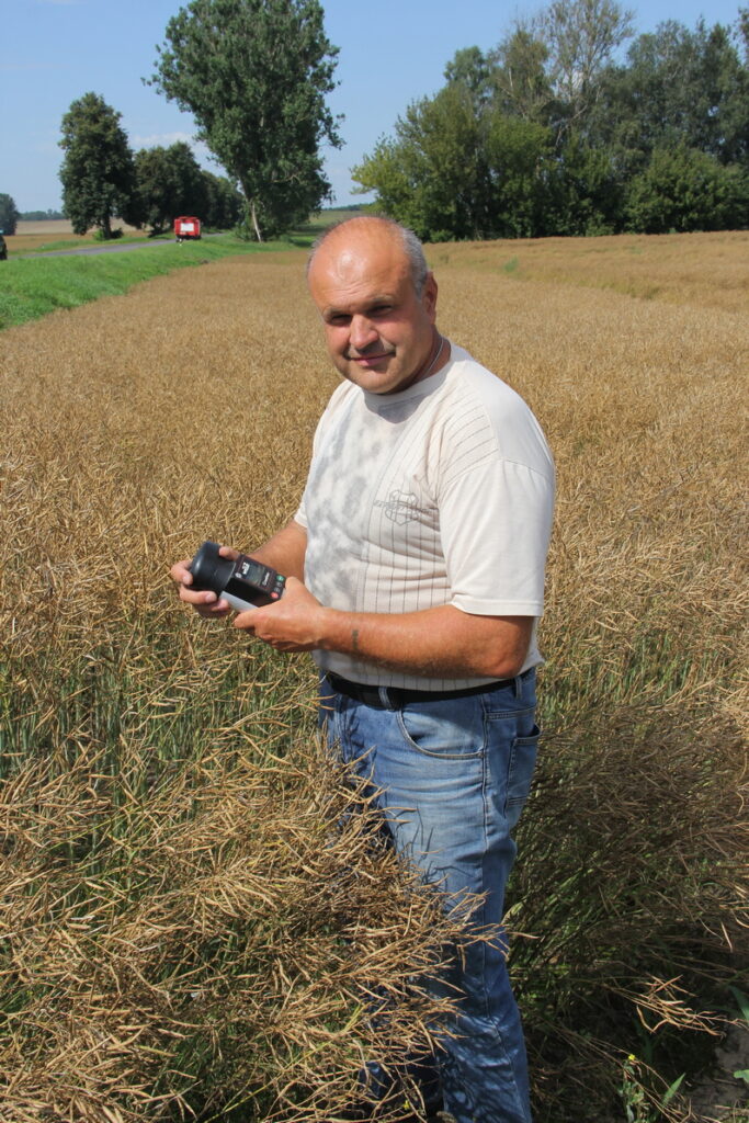Вырошчваннем дадзенай сельгаскультуры ў нашым раёне займаецца пяць гаспадарак: ААТ «Аранчыцкая птушкафабрыка», «Роўбіцкае», «Пружанскі райаграсэрвіс», «Ліноўскае» і «Агра-Калядзічы». Самыя вялікія плошчы ў апошняй гаспадарцы — 180 га, або трэць агульнага пляца (усяго па раёне — 565 га), яна першай у гэтую сераду прыступіла да выбарачнай уборкі яравога рапсу. Спачатку патрэбна вызначыцца са спеласцю, каб потым несці менш затрат на дапрацоўку. Адразу на палетку каля в. Дабучын вядучы аграном сельгаставарыства Сяргей Усік спецыяльным прыборам вызначыў узровень вільготнасці рапсу, якая склала менш за 8%. А гэта ўжо паказчык для таго, каб да асыпання зерня пачаць уборку і потым адправіць на рэалізацыю. Мінулагодняя ўраджайнасць у ААТ «Агра-Калядзічы» дадзенай сельгаскультуры склала 32 ц/га. Сёлета мяркуюць, што будзе на ўзроўні 30 ц/га. І для йяперашніх пагодных умоў гэтая лічба даволі прыдатная, а калі ўдасца перасягнуць паказчык 2024 года, тады хвала аграрыям гаспадаркі!