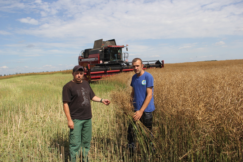 1. Па словах камбайнера Аляксея Шукурава і старшага камбайнера Віктара Імховіка, такі яравы рапс не можа не радаваць душу.