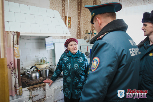 Вось стаіць дом, комін якога бялее на фоне блакітнага неба: зразумела, што і ў хаце будзе зроблена ўсё, як патрабуюць супрацьпажарныя правілы. А гэта — адрамантаваны комін на гарышчы, пабеленая печ з перадтопачным лістом, агульны парадак. Існуе меркаванне, што выканаць усе гэтыя патрабаванні вельмі цяжка старым лю-дзям, адзінокім жанчынам. Аднак яно, як пацвердзіла ўбачанае падчас рэйду, не адпавядае рэчаіснасці. Заходзім у дом, дзе жыве сям’я пенсіянераў.