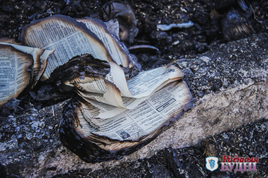 Пабачылі вынік таго пажару і мы. Абставіны здарэння высвятляюцца, але падобна, што агонь пайшоў ад пакінутага без нагляду кормазапарніка.