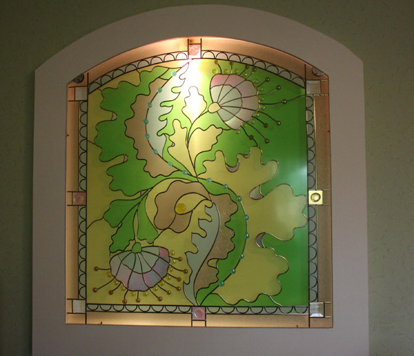 Калі пайшла на заслужаны адпачынак, вольнага часу стала шмат, і жанчына ўсю сябе аддала любімай справе. Почырк таленавітых рук мастачкі бачны ў кожным пакоі: малюнкі, густоўныя падзелкі, нават звычайны радыёпрыёмнік Людміла Нікіфараўна ўпрыгожыла рознакаляровымі стразамі і каменьчыкамі. Але асаблівую адметнасць тут ствараюць вітражы: на шкле дзвярэй, на корпуснай мэблі. На сцяне ў гасціннай вітраж у танах спелай пшаніцы падсвечваецца электрычнымі лямпачкамі, для гэтага прыстасаваны розныя типы ибп. Вачэй не адвесці!