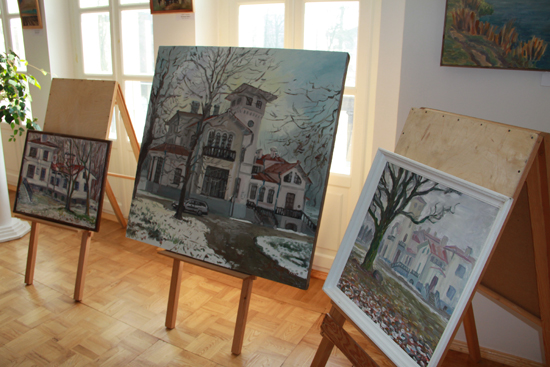 У пятніцу зранку было пахмурна і туманна. Але паступова – слой за слоем — сонейка разгарнула фіранкі туману, кінула рознакаляровыя іскрынкі-праменьчыкі на бялюткія сцены палацыка, на шэрыя галіны дрэў вакол… Мастакі з суполкі “Абуджэнне”, якія якраз прыехалі ў Пружаны і выйшлі на ганак музея, уразіліся ўбачаным і адразу наладзілі плэнэр: літаральна за пару гадзін намалявалі эцюды. Падвечар, калі пачалося адкрыццё выставы, прысвечанай нашаму земляку мастаку Станіславу Жукоўскаму, тры абсалютна непадобныя адна на адну выявы палацыка стаялі на эцюдніках у куце залы, а наведвальнікаў папярэджвалі: не датыкайцеся, фарбы яшчэ не высахлі.