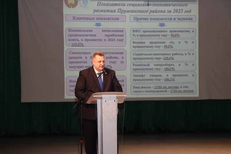 Приятным заключительным аккордом собрания стало вручение заслуженных наград победителям ежегодного соревнования за достижение лучших результатов в социально-экономическом развитии Пружанского района в 2025 году и праздничный концерт.