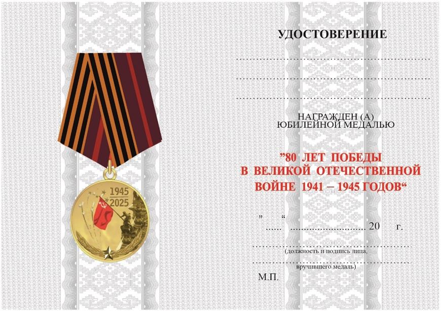 Президент Беларуси Александр Лукашенко 27 февраля подписал указ №80 «О юбилейной медали», которым утверждено положение о порядке награждения медалью «80 лет Победы в Великой Отечественной войне 1941-1945 годов».