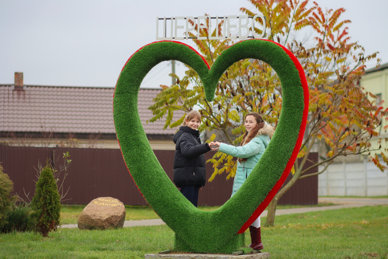 На территории городского поселка Шерешево не без помощи местных жителей преобразилась площадь Фимина. Здесь за счет средств бюджета появилась новая топиарная фигура в форме сердца — символа любви, единства и открытости. Такие элементы не только украшают, но и объединяют: тут делают фото, назначают встречи, просто гуляют. Помимо этого сооружения на площади Фимина также была установлена кованая скамейка с аркой.