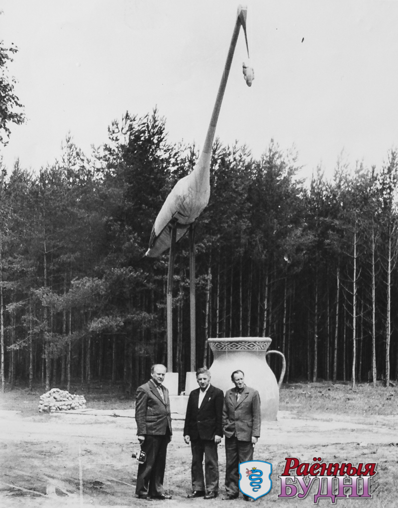 — У нашых майстэрнях было шмат таленавітых людзей, якія ратаваліся ад згубнай звычкі. Быў сярод іх і інжынер-авіяканструктар. Менавіта ён распрацаваў канструкцыю нашай скульптуры. Раней жа «Бусел» не проста стаяў… Яго ўсталявалі ля калодзежа з пітной вадой, каб падарожнікі маглі наталіць смагу. Калі вядро апускалася ў калодзеж, «Бусел» нахіляўся і разводзіў крылы.