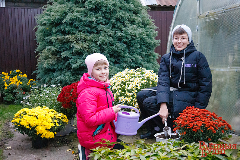 — Люди начали спрашивать, а где можно купить? Тут подруга Оля посоветовала увлечение превратить в небольшой доход: мол, начинай продавать, хотя бы затраты на грунт, семена перекроешь. Я узнала, как это все официально оформить. Оказалось, все просто, установила на телефон приложение «Профдоход», взяла справку о том, что имею земельный участок, — и все. Срабатывало сарафанное радио, соседи рассказали друзьям, те — своим родственникам… Потенциальные покупатели начали интересоваться и приезжать за цветами прямо домой. Уже нужно было расширять ассортимент и увеличивать количество растений. Но места на участке было мало. И тут судьба сама подсказала решение. В один из дней приходит папа и говорит: «Мы отдаем вам дачу в Купичах, нам уже тяжело, возраст не тот. Что хотите, то с ней и делайте». Они были уверены, что мы ее продадим. Я спросила у мужа, что будем с ней делать? Он говорит: газон покосим, а все остальное засадим картошкой. А я предложила: давай попробуем посадить 3 ряда хризантем — это где-то 300 штук. Будет у нас цветущее поле, сфотографируем и отправим в газету. В этом году «раёнка» сама к нам приехала. И правда, мечты сбываются!