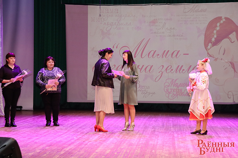 — Ёсць на свеце любоў, якую ні з чым нельга параўнаць, — мацярынская. Мама — гэта наш дом, мама — наш сусвет, — сказала Таццяна Юр‘еўна і пажадала, каб вочы ўсіх мам свяціліся радасцю і гордасцю за сваіх дзяцей. Яна ўручыла Падзячныя сертыфікаты 15-ці жанчынам — членам прафсаюзных арганізацый раёна, актывістам, якія паспяхова сумяшчаюць мацярынства з грамадскай работай, а таксама шматдзетным мамам.