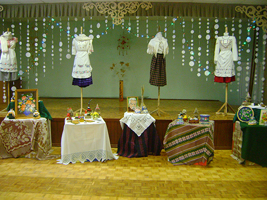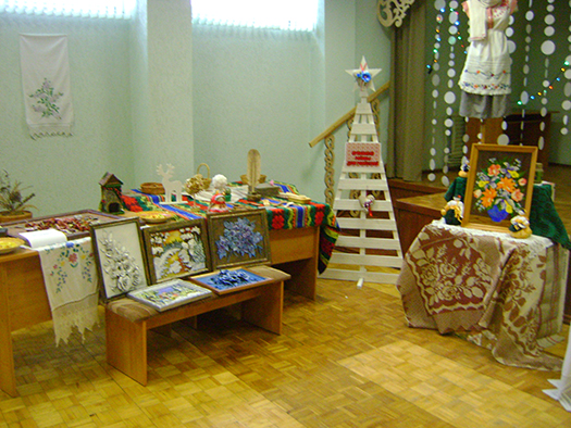 У цэнтры выставы – партрэт нашага славутага земляка, намаляваны на шкле Верай Віктараўнай Волчык. Гасцям таксама прадстаўлены лепшыя работы – карціны, роспіс па дрэве і шкле, вырабы з дрэва, абрадавыя лялькі-абярэгі майстроў Дома рамёстваў Марыі Іванаўны Белаглаўка, Яніны Іванаўны Заянчкоўскай, Веры Віктараўны Волчык і Алены Пятроўны Бяляўскай. Прывабліваюць позірк таксама кампазіцыі з халоднага фарфору і домік з папье-машэ – вынік карпатлівай працы Сняжаны Мікалаеўны Протас з а/г Лінова.