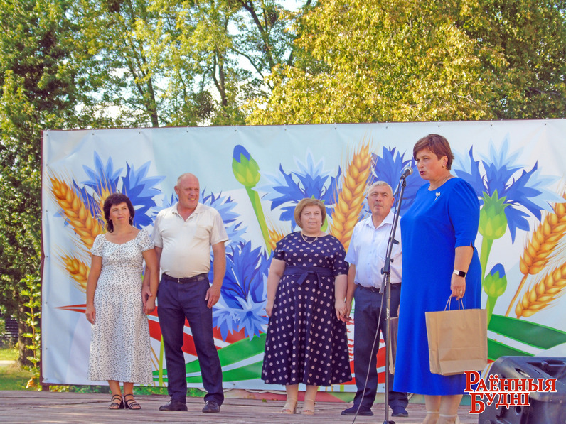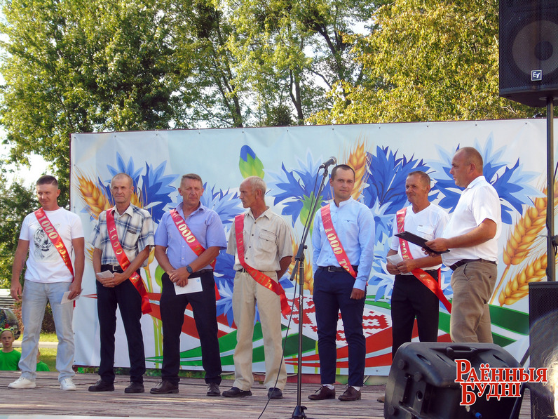 Кіраўнік гаспадаркі адзначыў адказную працу ўсіх, хто ўдзельнічаў у сёлетнім жніве: убіраў, адвозіў, дапрацоўваў збожжа новага ўраджаю, — і ўручыў граматы, грашовыя прэміі і падарункі пераможцам спаборніцтва.