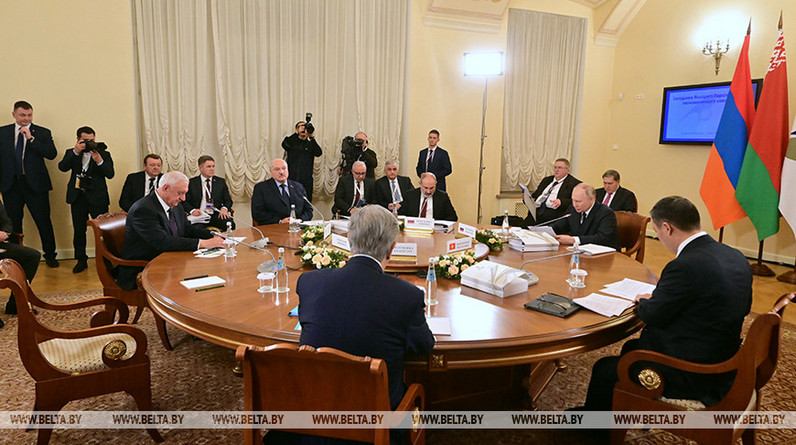 Прэзідэнт Беларусі Аляксандр Лукашэнка прымае ўдзел у саміце Еўразійскага эканамічнага саюза ў Санкт-Пецярбургу, перадае карэспандэнт БЕЛТА.