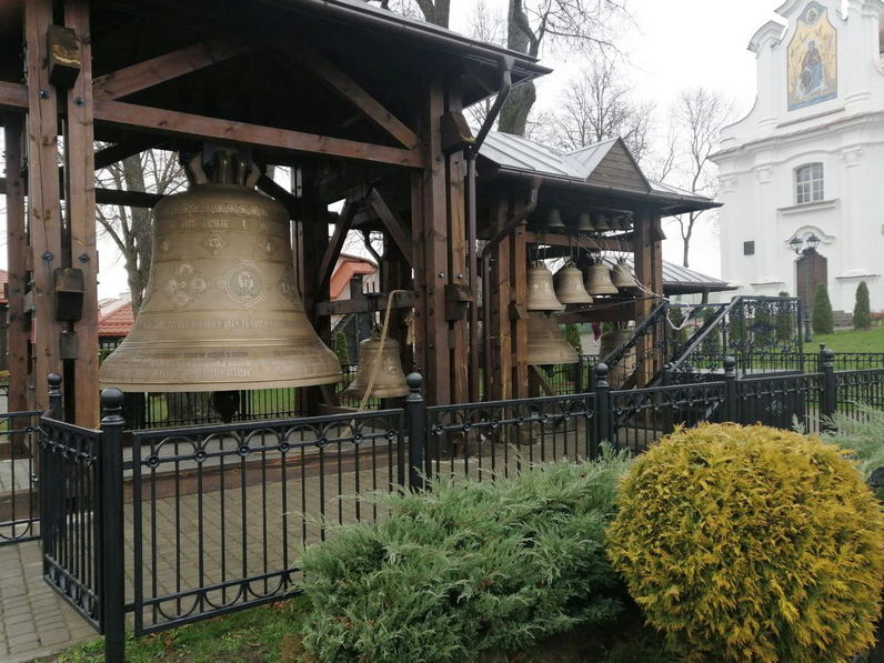 Да юбілейных дат паміж храмамі была ўстаноўлена скульптурная кампазіцыя, якая праілюстравала момант цудоўнага знаходжання пастушкамі іконы Божай Маці. Побач на часовай званіцы змешчаны і асвечаны самы вялікі ў Беларусі звон. На ім не толькі традыцыйныя выявы святых ікон, але і барэльефы 12-ці гарадоў-герояў і Брэсцкай крэпасці-героя, а таксама асабліва значных для беларусаў месцаў памяці і гераічнай славы. Не давялося пачуць, як ён гучыць, але можна ўявіць, што гук 14-тоннага дабравесніка ляціць за многія кіламетры, каб разам са святымі малітвамі вылечыць душы, з‘яднаць, дапамагчы кожнаму знайсці сілы жыць, памятаць, верыць…