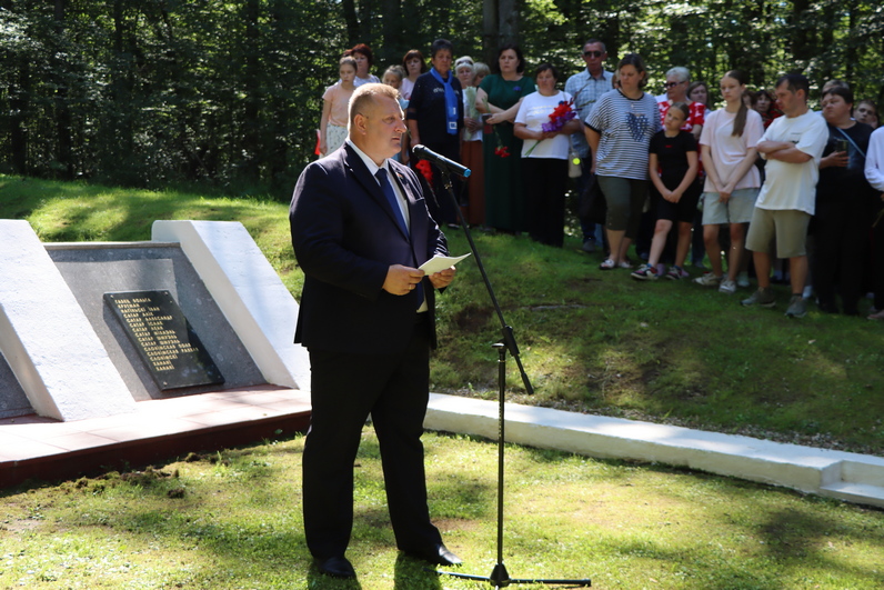 Адкрыў мерапрыемства старшыня райвыканкама Міхаіл Грышкевіч. Ён адзначыў, што ў 2025 годзе на брацкай магіле былі праведзены рамонтныя работы, усталявана дадатковая пліта, на якую вынесены 15 раней невядомых імёнаў.