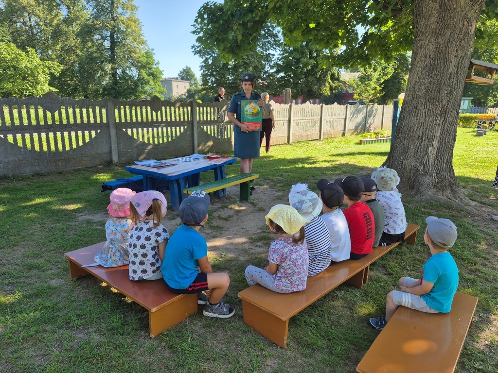 Пропагандист Пружанского РОЧС Инна Хававка встретилась с детворой из Слободского детского сада. Занятия по безопасности прошли по сценарию «5 шагов спасения».