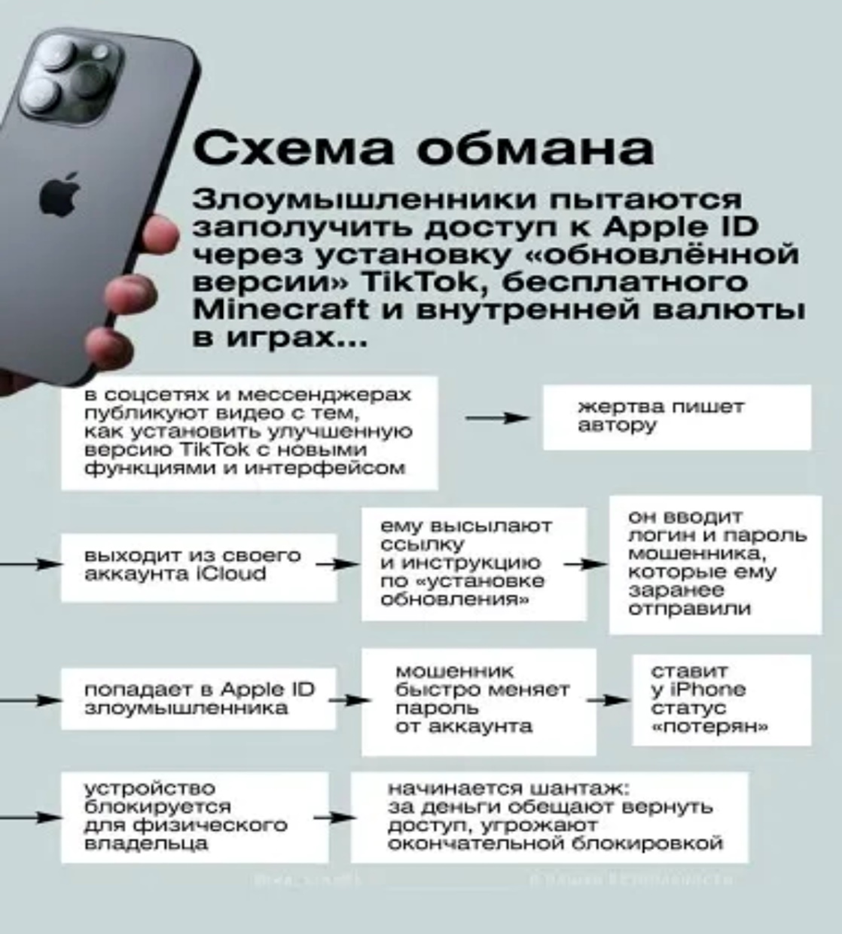 - ИГНОРИРУЙТЕ любые просьбы — от незнакомцев в социальных сетях, на сайтах знакомств — до «знакомых», просящих «быстро зайти в iCIoud или Apple ID со своего телефона». В противном случае ваш телефон будет заблокирован, а деньги вы потеряете безвозвратно.
