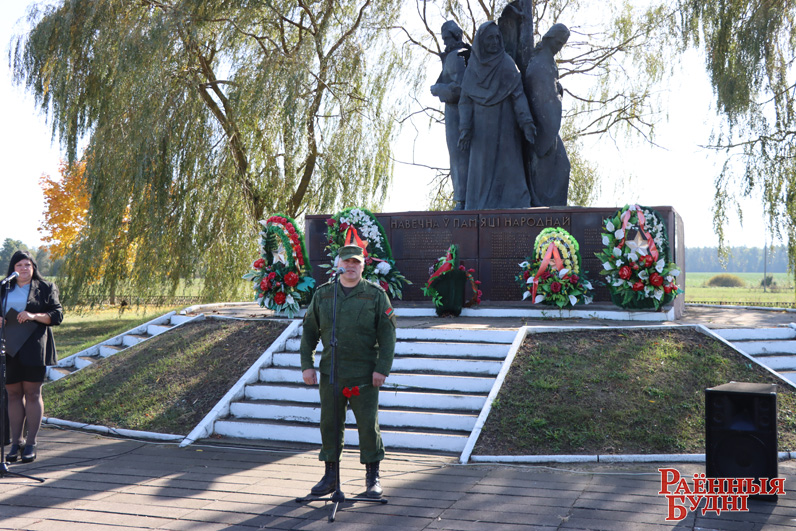 — Мы сёння знаходзімся каля помніка загінулым, на якім змешчаны імёны нашых землякоў. А колькі іх яшчэ без вестак зніклых, невядомых, — зазначыў начальнік упраўлення па ўвекавечанні памяці абаронцаў Айчыны і ахвяр войнаў Узброеных Сіл Рэспублікі Беларусь Сяргей Корнеў. — Прайшло 79 гадоў як скончылася Вялікая Айчынная вайна, але яе рэха да гэтага часу не заціхае ў людскіх сэрцах. Дагэтуль людзі шукаюць загінулых сваякоў, шукаюць месцы пахаванняў, каб аднавіць сувязь пакаленняў. Вельмі важна, каб нашчадкі ведалі і памяталі сваіх герояў, дзякуючы якім мы зараз жывём пад мірным небам. У рамках акцыі воінамі-пошукавікамі падняты астанкі больш за 100 чалавек, знойдзена 27 медальёнаў і ўдалося ўстанавіць звесткі аб 12 загінулых. Таксама абясшкоджана больш за 50 выбухованебяспечных прадметаў, больш за 1000 патронаў.