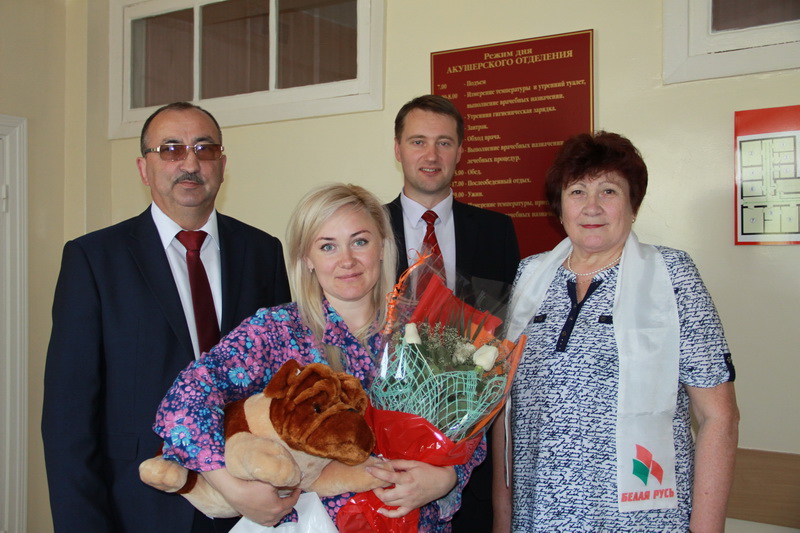 Гэтая прыгожая 32-гадовая жанчына 3 ліпеня ў 12.15 гадзін падарыла сабе, сваёй сям’і і ўсяму сусвету прыгожага хлопчыка ростам 52 см і вагой 3 кг 300 грамаў. І менавіта яна ў чацвер прымала першыя падарункі ад высокіх гасцей, якія наведалі яе па добрай традыцыі ў рамках рэспубліканскай акцыі «Белая Русь» — з любоўю да дзяцей».