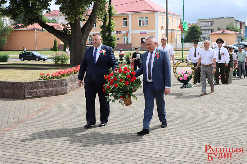 Ва ўскладанні вянкоў і кветак да помніка «Спаленым вёскам» прынялі ўдзел старшыня райвыканкама Міхаіл Грышкевіч, старшыня раённага Савета дэпутатаў Мікалай Кудравец, прадстаўнікі сілавых ведамстваў і інш.