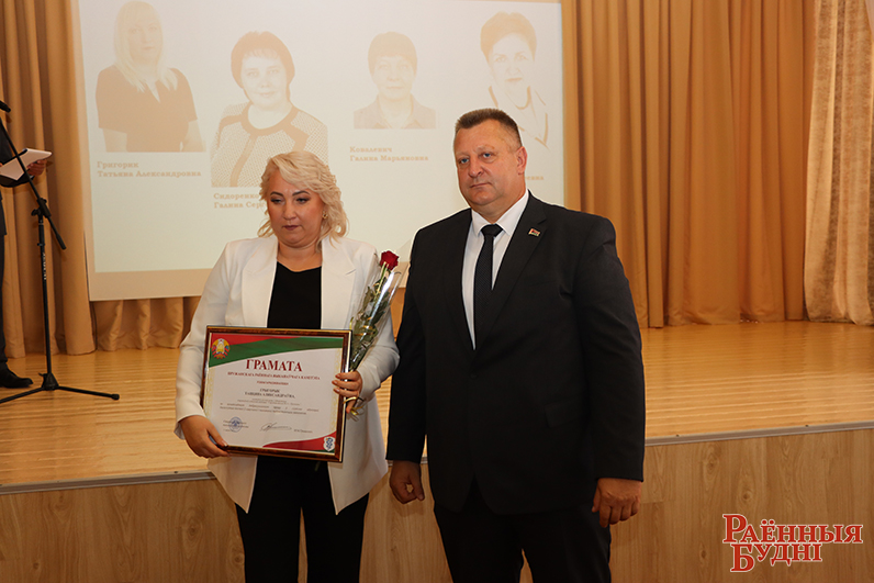 У гэты дзень у адрас педагогаў гучалі толькі цёплыя словы віншаванняў і пажаданняў, да якіх далучыўся старшыня раённага выканаўчага камітэта Міхаіл Грышкевіч, а таксама ўручыў граматы і лісты падзякі ад райвыканкама лепшым педагогам раёна.
