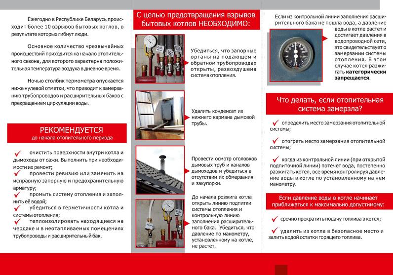 Основное количество чрезвычайных происшествий в Республике Беларусь, связанных с бытовыми котлами, приходится на начало отопительного сезона и на время с неустойчивыми температурами наружного воздуха (для которого характерна положительная температура воздуха в дневное время и отрицательная температура воздуха в ночное время).