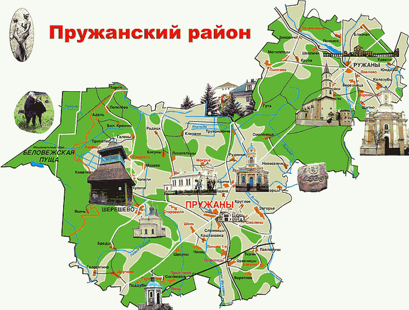 На тэрыторыі раёна нямала гістарычных і памятных мясцін, адно з іх – Віскулі, месца падпісання ў 1991 годзе Белавежскага пагаднення аб ліквідацыі СССР і ўтварэнні СНД.