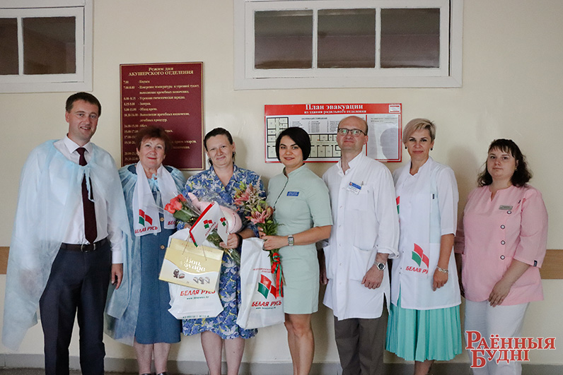Задаволеную мамачку прыйшлі павіншаваць намеснік старшыні Пружанскага райвыканкама Руслан Супрыновіч і старшыня Пружанскай раённай арганізацыі РГА «Белая Русь» Таццяна Кашкан. Былі ўручаны кветкі, падарункі і салодкія сувеніры, прагучалі цёплыя словы і пажаданні.