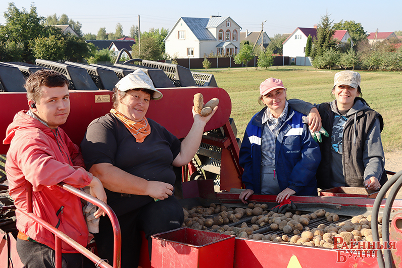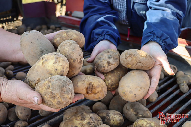 Загадчык аддзела бульбаводства доследнай станцыі Анатоль Карпеш расказаў, што сёлета сярэдняя ўраджайнасць складае 257 ц/га, ніжэй за мінулагоднюю. Чаму сярэдняя? Таму што кожны сорт бульбы па-свойму рэагуе на асаблівасці надвор’я, якое сёлета вызначылася высокімі тэмпературамі паветра і малой колькасцю ападкаў. Вось адгэтуль і варыяцыя: ад 200 да 400 ц/га. Што цікава, самі клубні маюць лепшы таварны выгляд, чым год назад. Трактар «Беларус» з прычапным бульбаўборачным камбайнам праходзіць ад 1 да 2 га плошчаў у дзень, гэта раўнуецца 40-70 тонам бульбы.