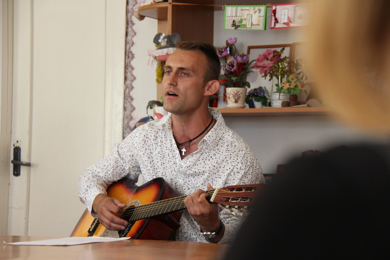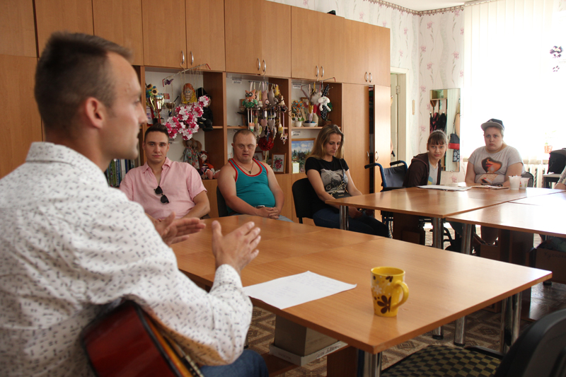 Падзяліцца сваёй творчасцю з маладымі інвалідамі вырашыў настаўнік фізкультуры Кляпацкай СШ Юрый Ліпіч. Юрый піша вершы і музыку, пад гітару выконвае ўласныя творы. Ён не толькі выканаў некаторыя свае песні, але і расказаў слухачам пра натхненне, пра тое, як нараджаецца музыка, падзяліўся пазітыўным настроем.