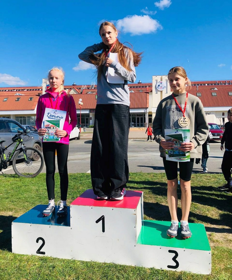 Еще пополнили копилку нашей команды наградами подопечные тренера Сергея Александровича Чайковского. На дистанции 500 метров среди девочек 2013 г.р. себя сумели проявить сразу две наших бегуньи. Елена Литвинович в упорной борьбе сумела стать третьей, а Дарья Облаушко остановилась в шаге от победы и завоевала серебряную медаль.