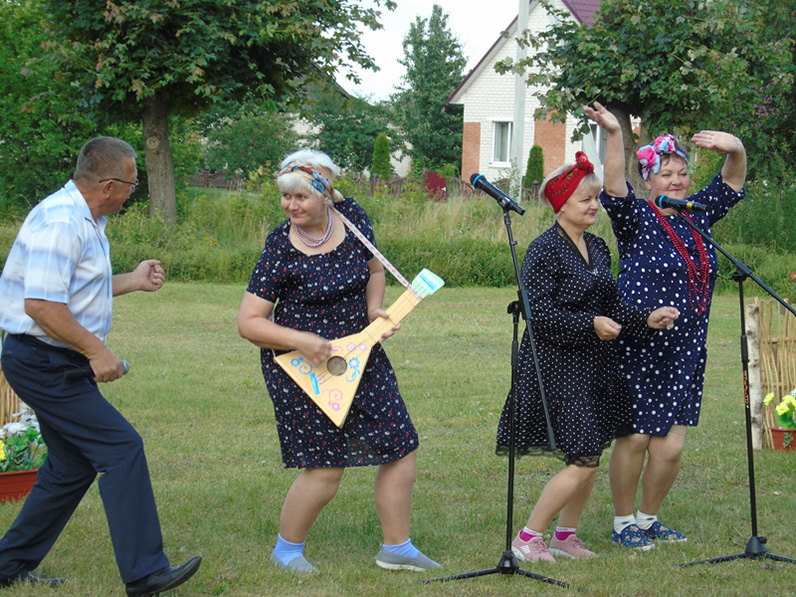 І вось ужо ад душы смяюцца вяскоўцы над прыгодамі вядучых, нехта з якіх нават на папутным самалёце спяшаўся на свята (дарэчы, усе жарты на мясцовым дыялекце).
